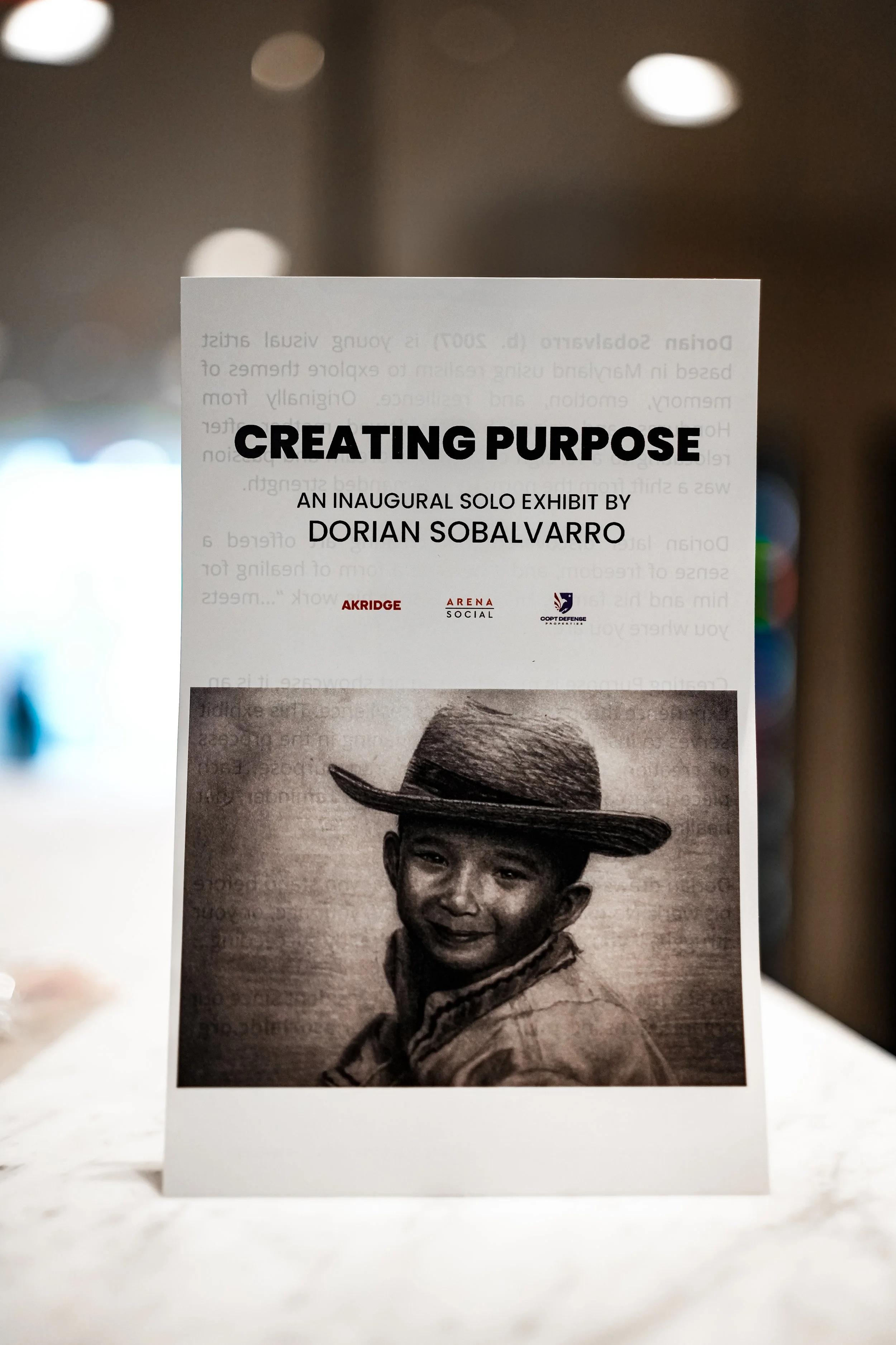 Creating Purpose was more than an art showcase, it was an experience through emotion and resilience. This exhibit served to inspire others to find meaning in the process of creation, to transform passion into purpose. Each piece is a conversation, reflection, and reminder that healing can be found in creation. Dorian became the youngest artist in residency since the organization's inception